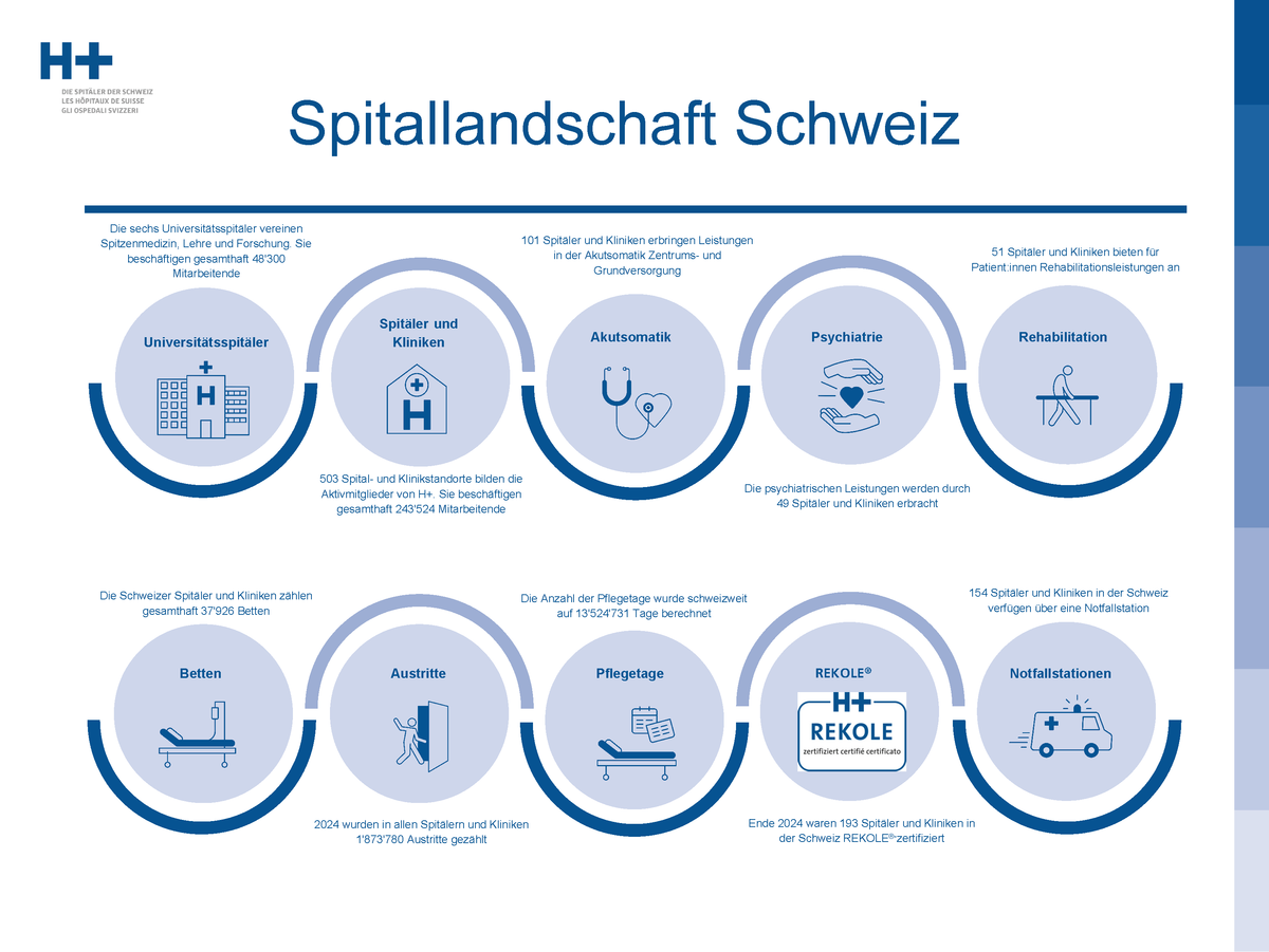 Werden Sie Mitglied bei H+ – Gemeinsam für eine starke Gesundheitsversorgung in der Schweiz: Der Verband H+ die Spitäler der Schweiz vereint 218 Schweizer Spitäler und Kliniken an 503 Standorten sowie auch 13 Verbandsmitglieder und 120 Partnerschaftsmitglieder. Der Verband engagiert sich für eine zukunftsfähige und qualitativ hochstehende Gesundheitsversorgung. Als Mitglied profitieren Sie von einem starken Netzwerk, praxisnaher Beratung, aktuellen Brancheninformationen und gezielten Weiterbildungsangeboten.