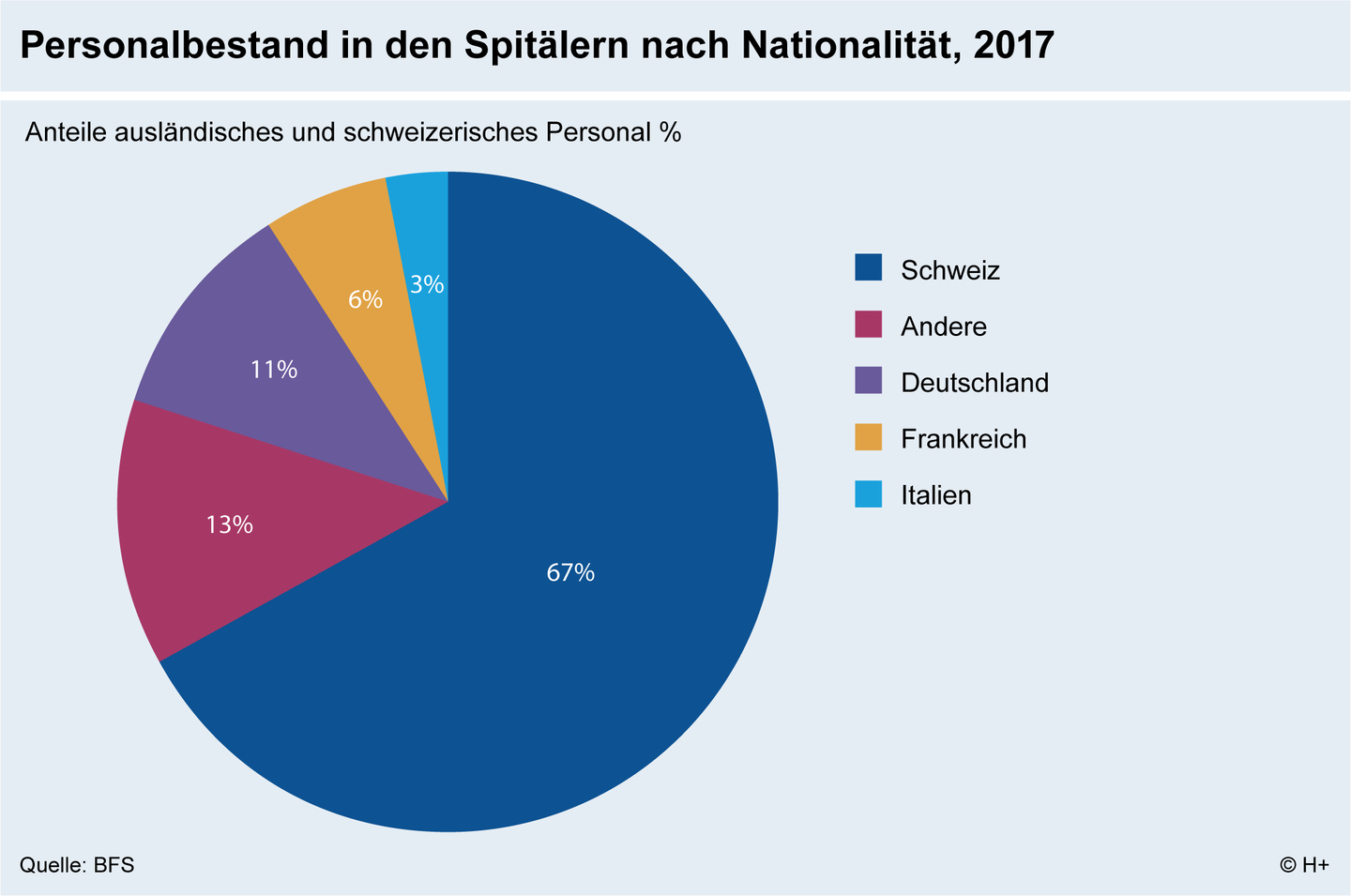 Der Ausländeranteil beim Spitalpersonal ist über die Jahre stabil bei rund 33% geblieben.