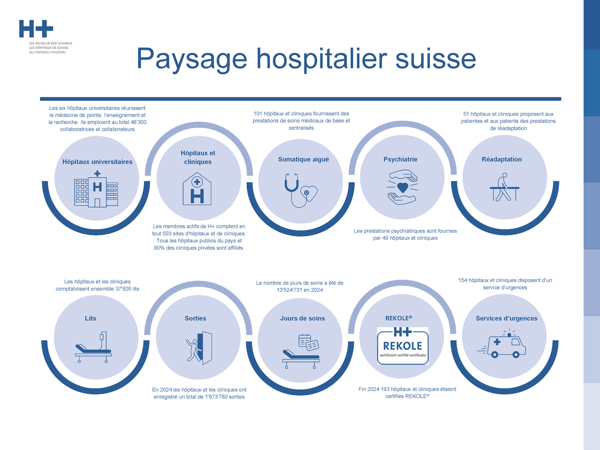 Affiliez-vous à H+ Les Hôpitaux de Suisse – unis pour des soins de santé forts : l’association rassemble plus de 218 hôpitaux et cliniques répartis sur 503 sites ainsi que 13 membres associatifs et 120 partenaires. H+ s’engage en faveur de soins de santé de qualité et pérennes. En adhérant, vous bénéficiez d’un réseau solide, de conseils orientés vers la pratique, des dernières informations sur la branche et d’offres ciblées de formation continue.